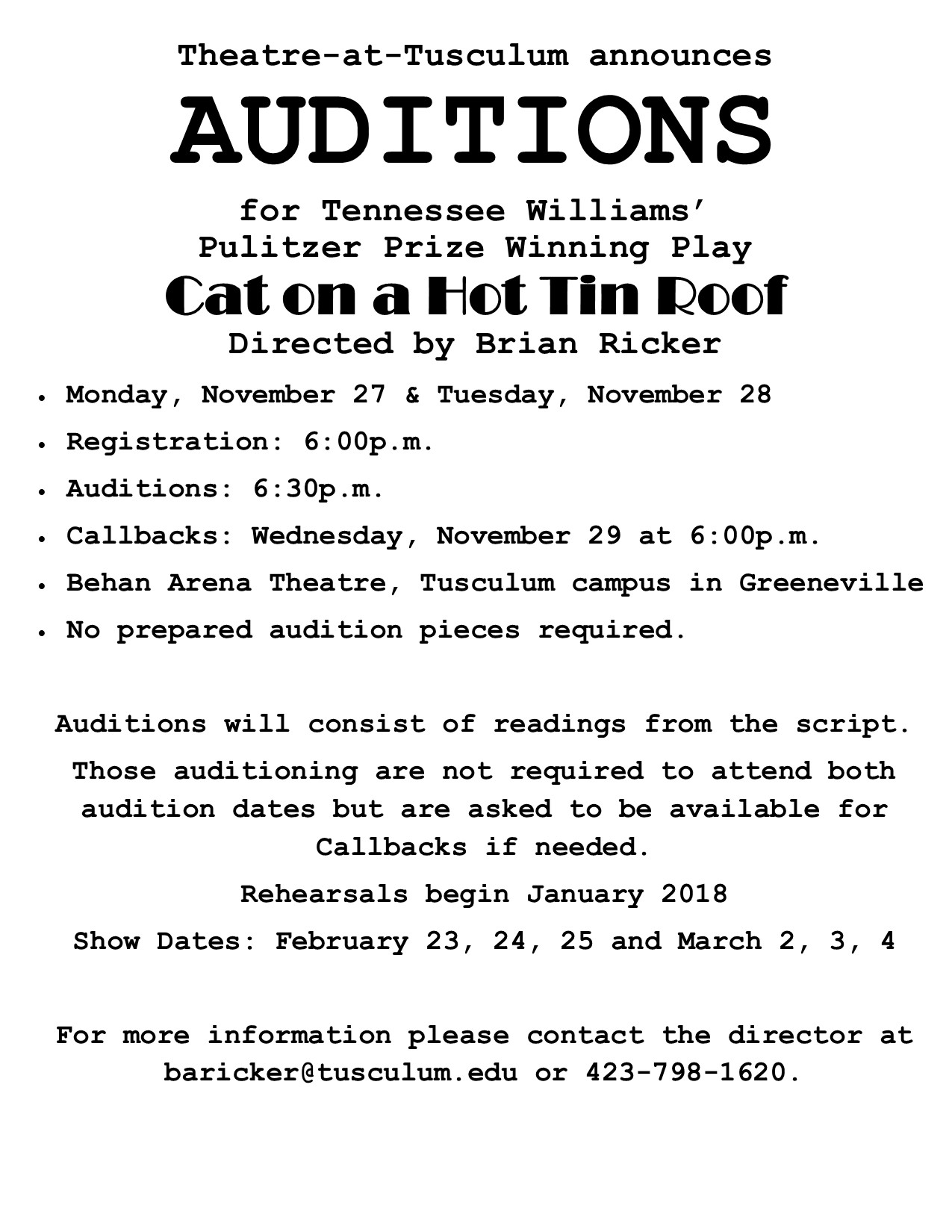 Auditions Announced for Theatre-at-Tusculum
