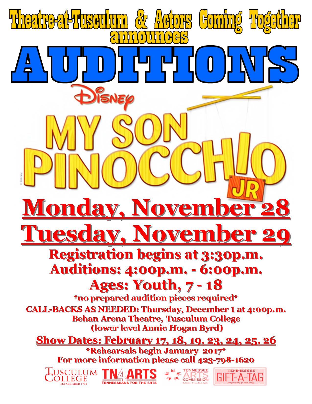 GREENEVILLE, Tenn. – More than 30 of the area’s finest young performers will fill the stage to present Disney’s “My Son Pinocchio, JR” during the last two weekends of February at Tusculum College.